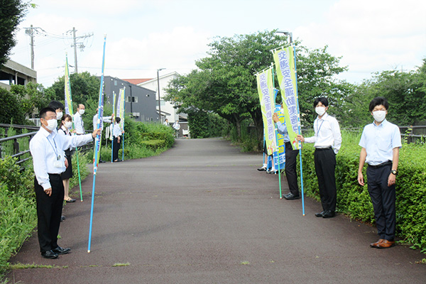 2022年7月11日(月)に藤枝西高等学校前にて『夏の交通安全県民運動』の交通安全活動を実施しました。