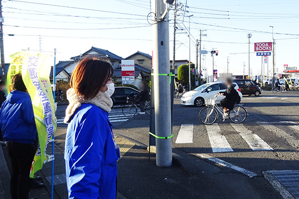 藤枝北高等学校の教職員をはじめとする関係者の皆さまと、東名自動車学校のスタッフと合同で歩行者、通行自転車、通行車両に交通安全を呼びかけました。